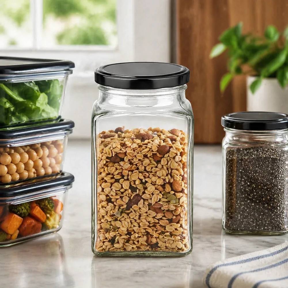 - Praktisches Twist-Off Viereckglas mit passendem BasicSeal Deckel - zum Einkochen, Einfrieren und Aufbewahren. Dieses Glas/Deckel Set eignet sich hervorragend zum Einmachen, als Vorratsglas und zum Dekorieren. Unsere Empfehlung: Verpacken Sie Zimtstangen, Marmelade oder aromatische Gewürze.