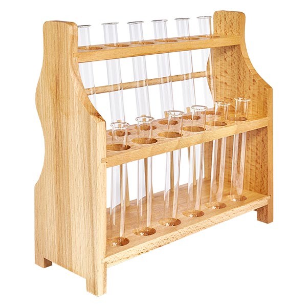 Reagenzglasgest.aus Holz mit 12 Reagenzgl.Borosilikat 100x12