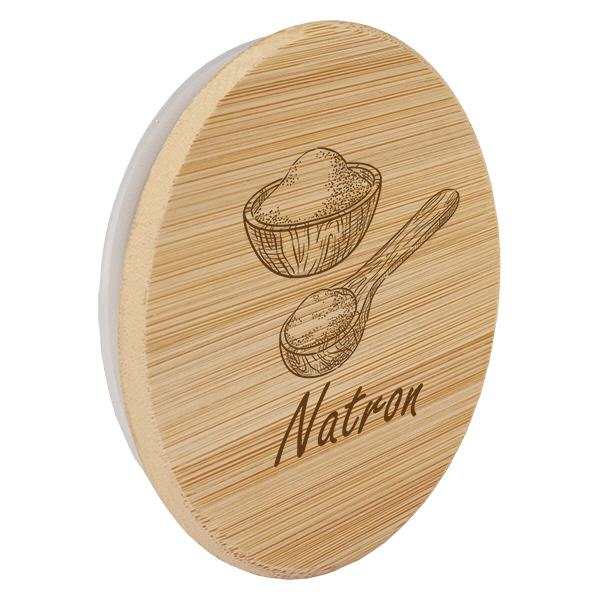 - Aufdruck: Brauner Schriftzug und Bild "Natron"