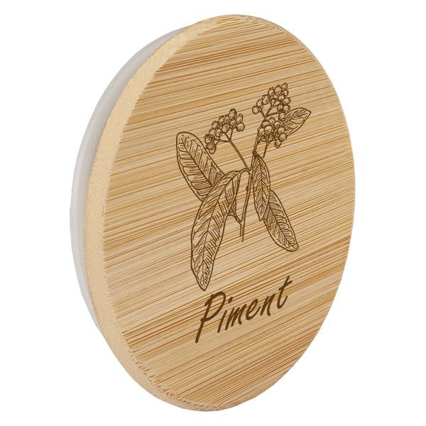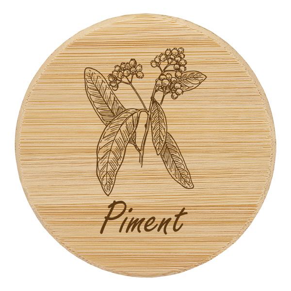 - Aufdruck: Brauner Schriftzug und Bild "Piment"