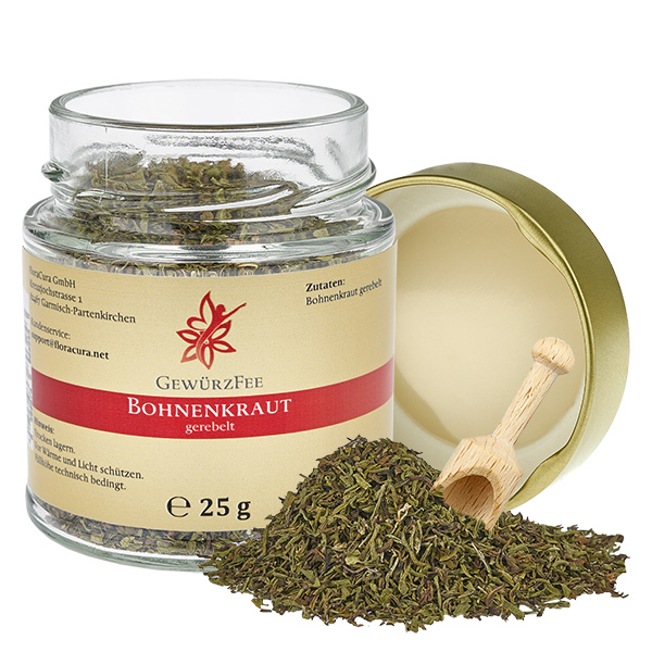 Bohnenkraut gerebelt im Schraubglas Gewürzfee