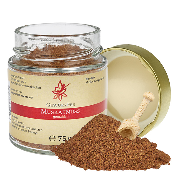 Muskatnuss gemahlen im Schraubglas Gewürzfee