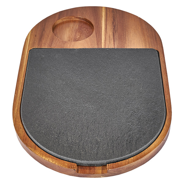 Servierbrett Plus3 aus Akazienholz und Schiefer
